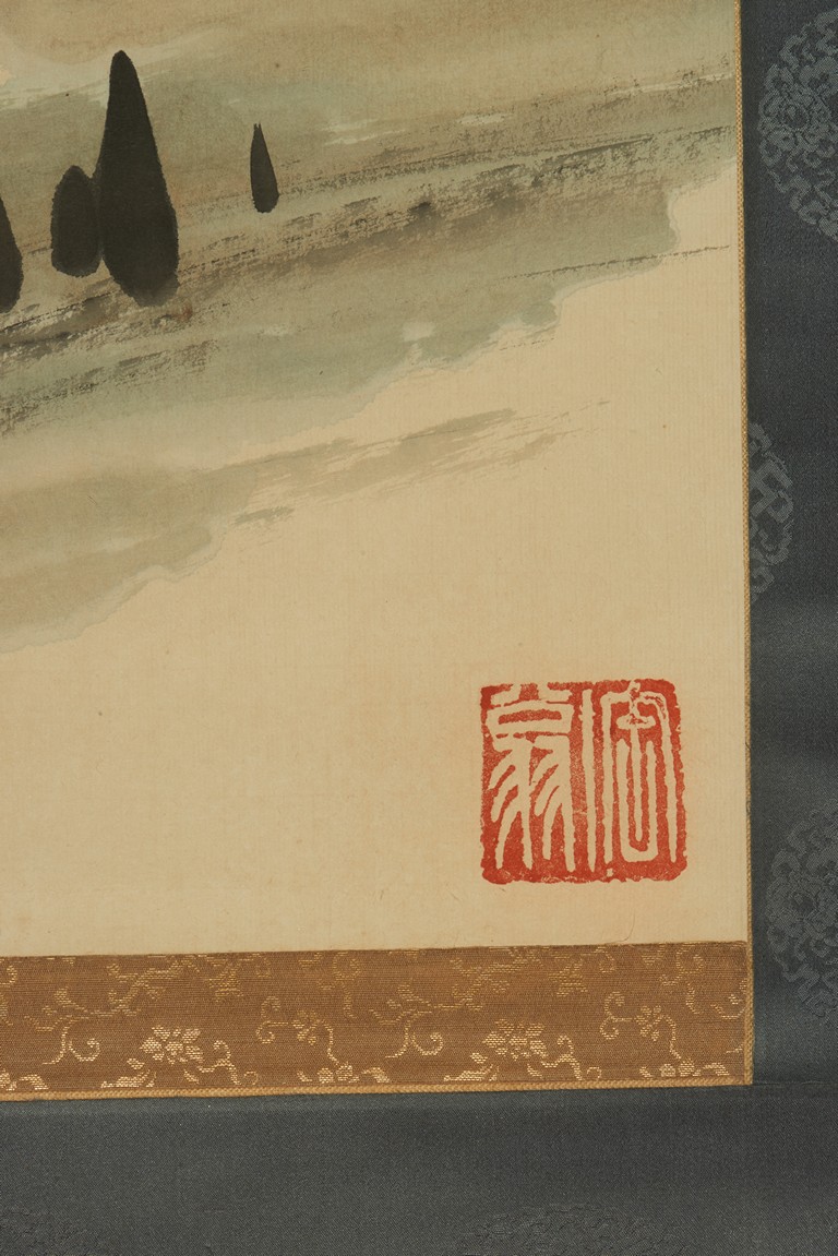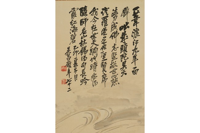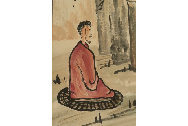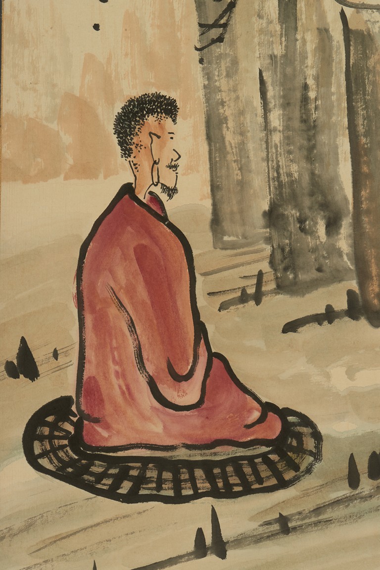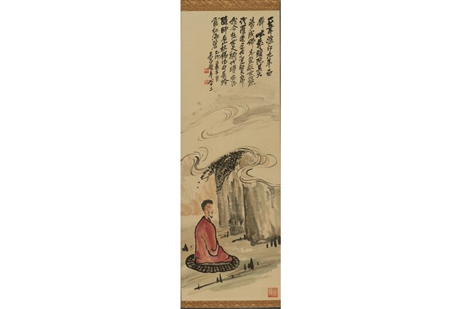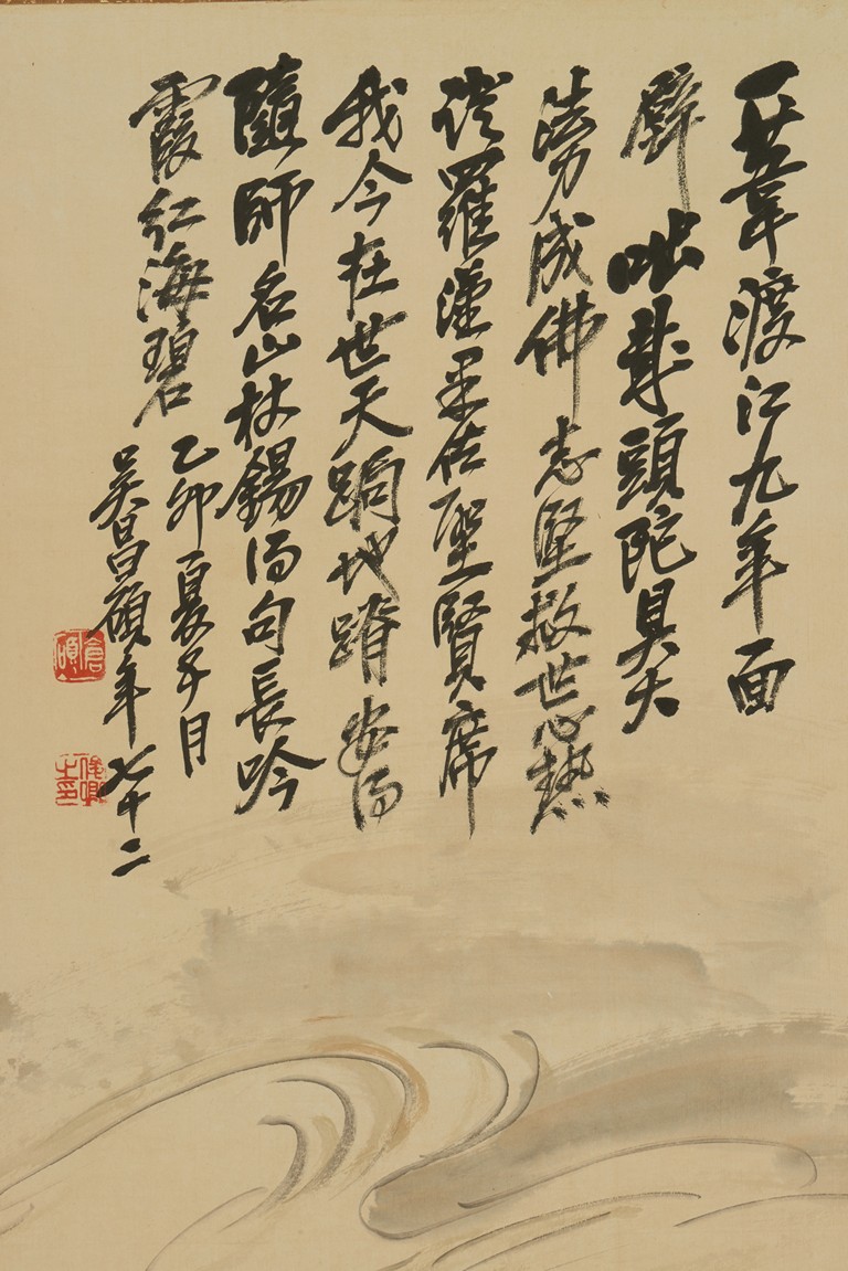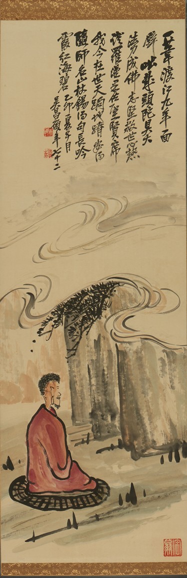 Color and ink on paper. Bodhidharma. Inscribed and signed Wu Chang Shuo, with three seals of the artist.