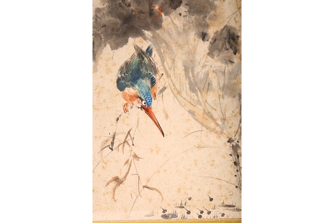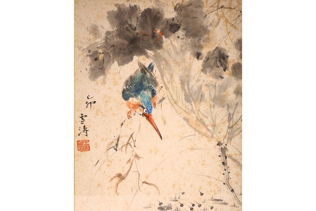 Color and ink on paper. Bird. Framed. Signed Xue Tao. With one seal of the artist.