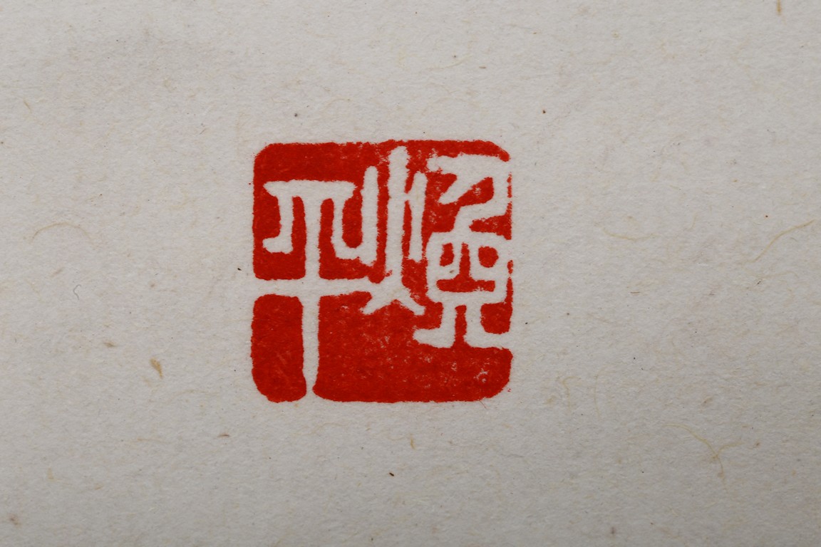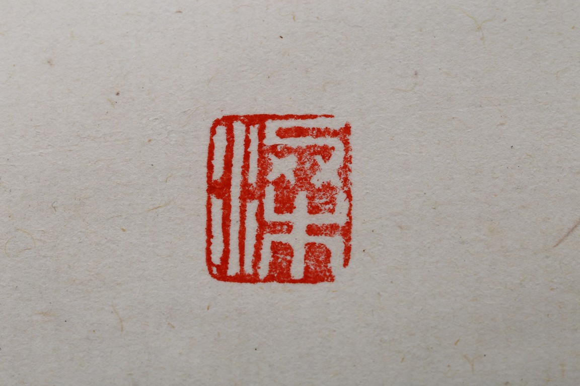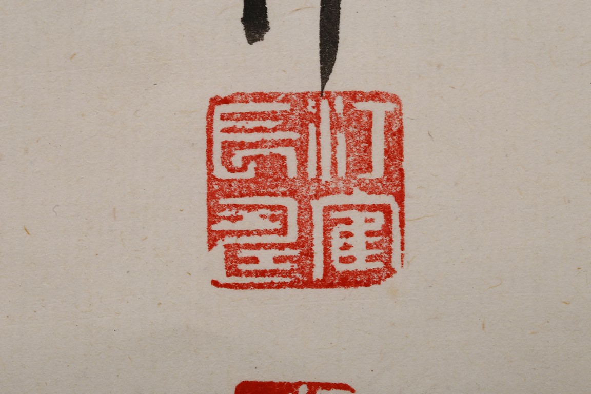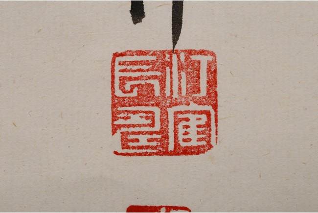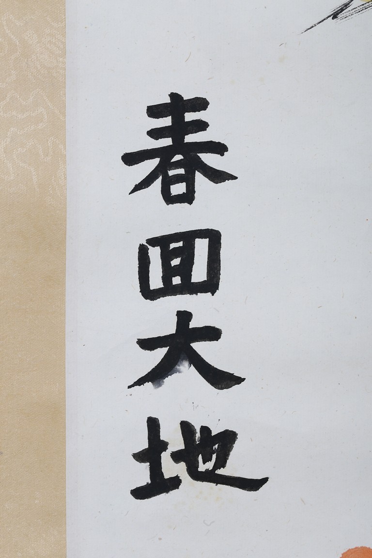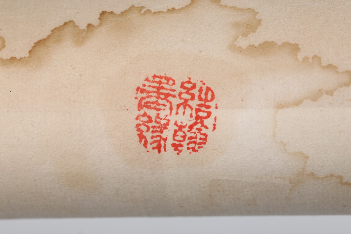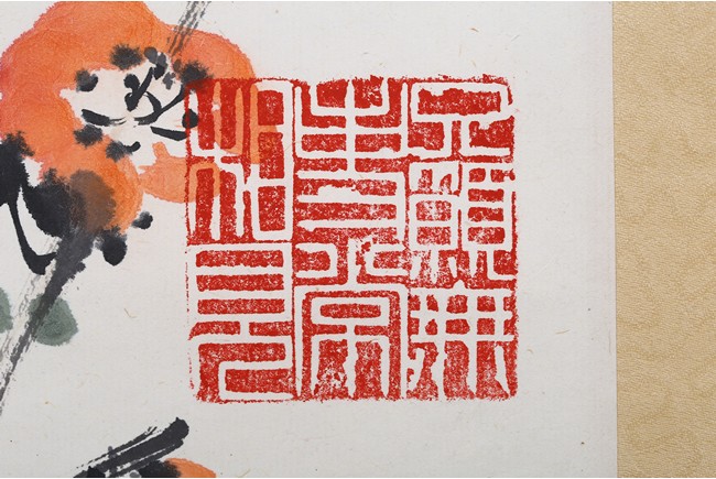 Color and ink on paper. Orchid, plum blossom and two birds. Inscribed and signed, hanging roll, with four seals of the artists.