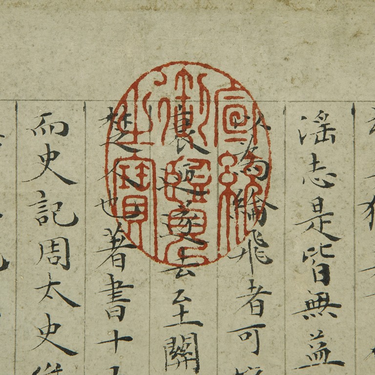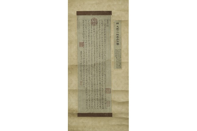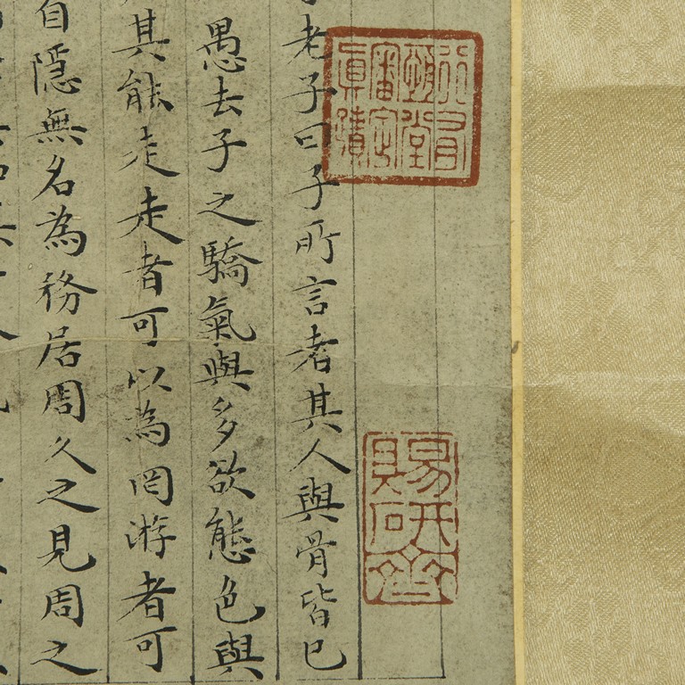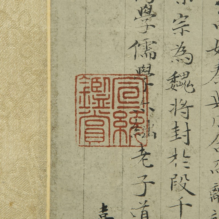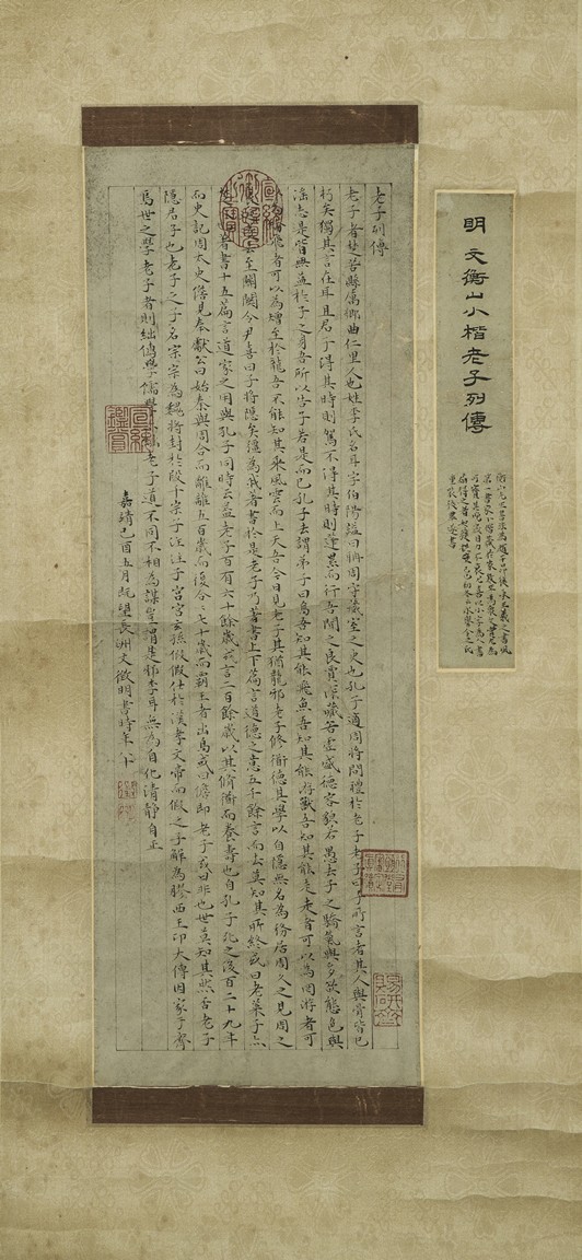 Ink on paper. Regular-script calligraphy. Inscribed and signed Wen Zhengming. With six seals of the artist and collector.