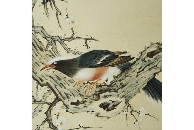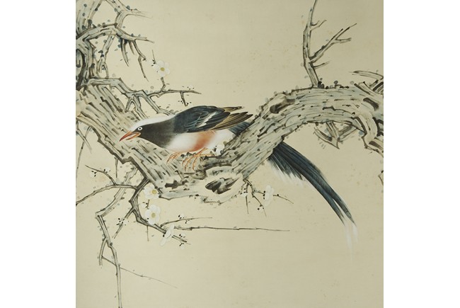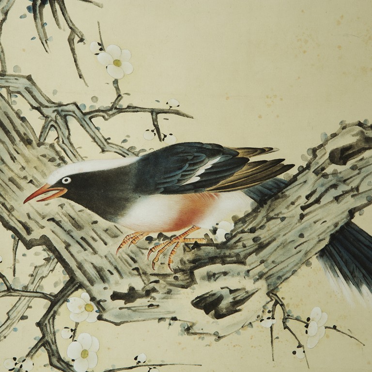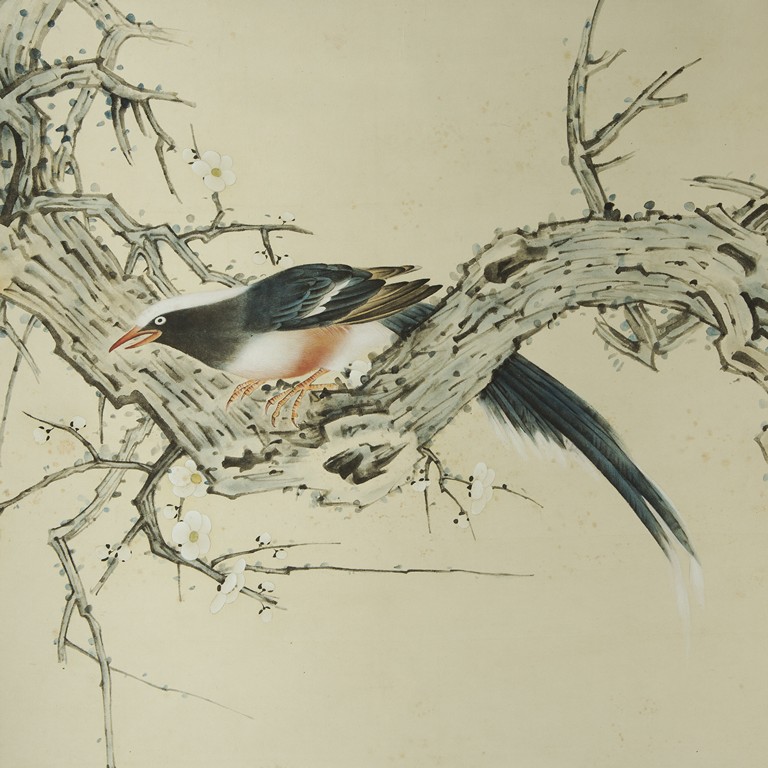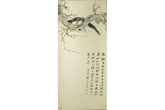 ZHANG DAQIAN: COLOR AND INK ON PAPER 'PLUM BLOSSOM' 張大千 梅花喜鵲圖 設色紙本