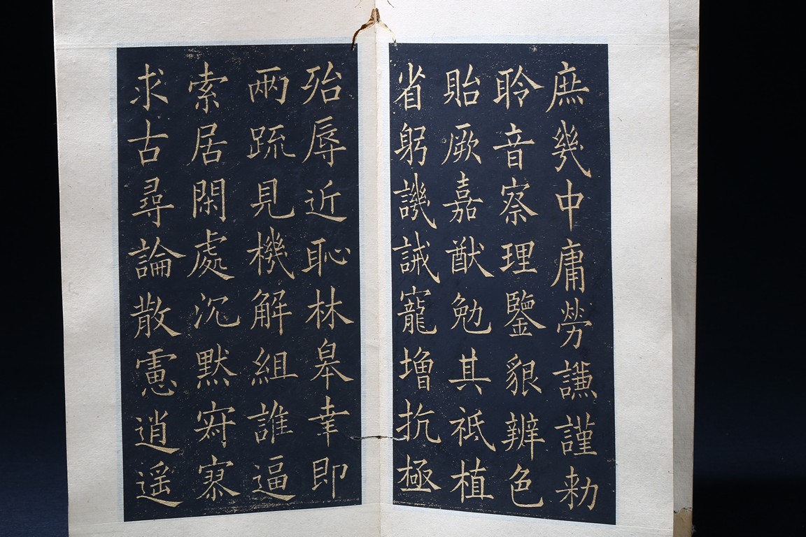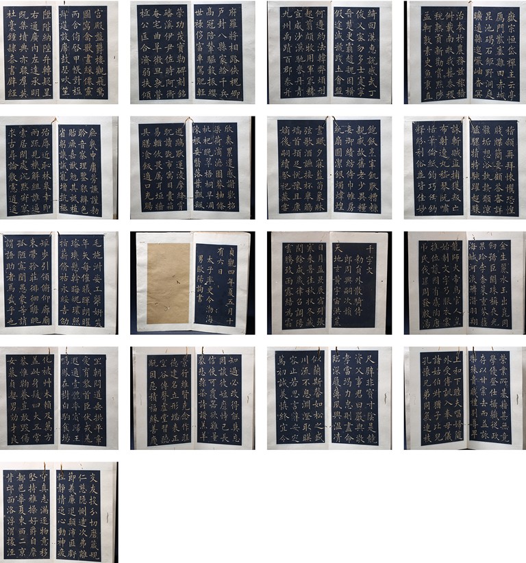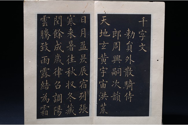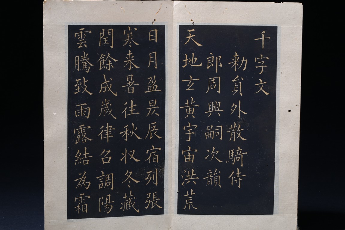 OU YANGXUN: INK ON PAPER RUBBING CALLIGRAPHY ALBUM 歐陽詢 千字文 拓本 冊頁 紙本