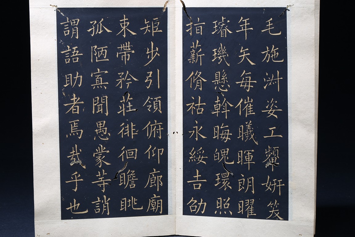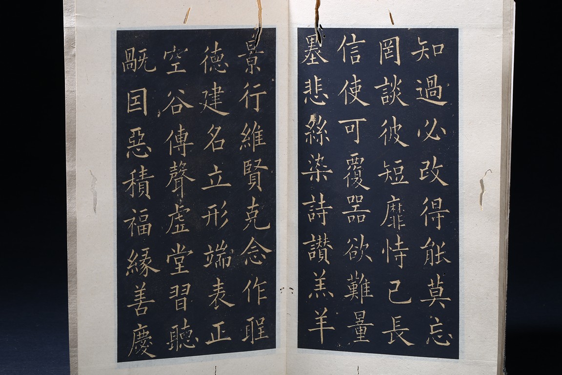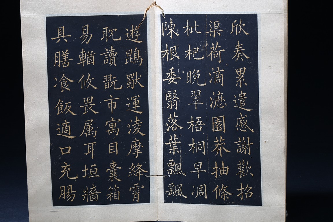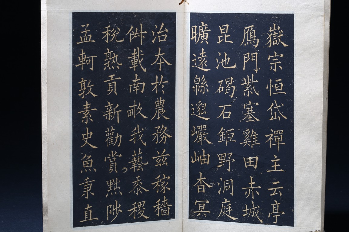 OU YANGXUN: INK ON PAPER RUBBING CALLIGRAPHY ALBUM 歐陽詢 千字文 拓本 冊頁 紙本