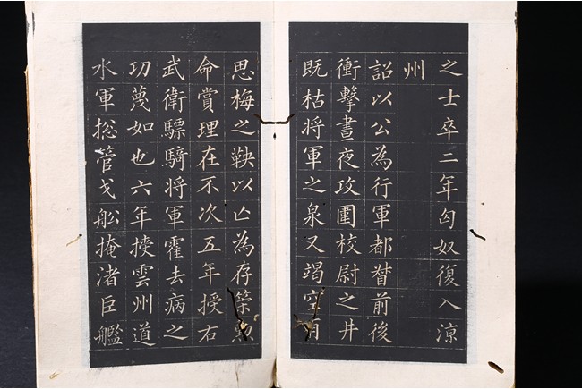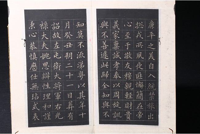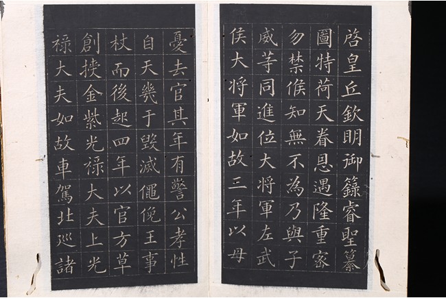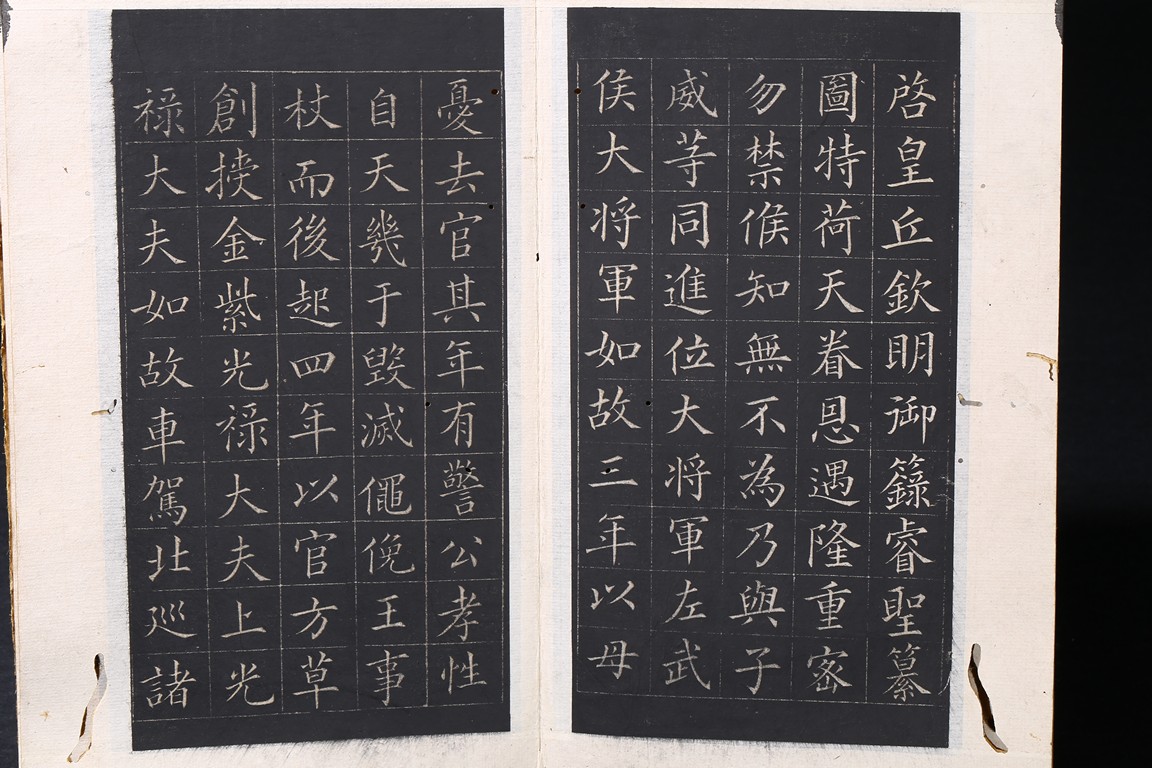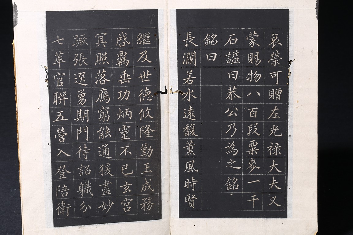 Ink on paper. Rubbing. Regular script calligraphy. Twenty-six leaves.