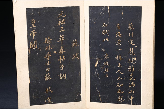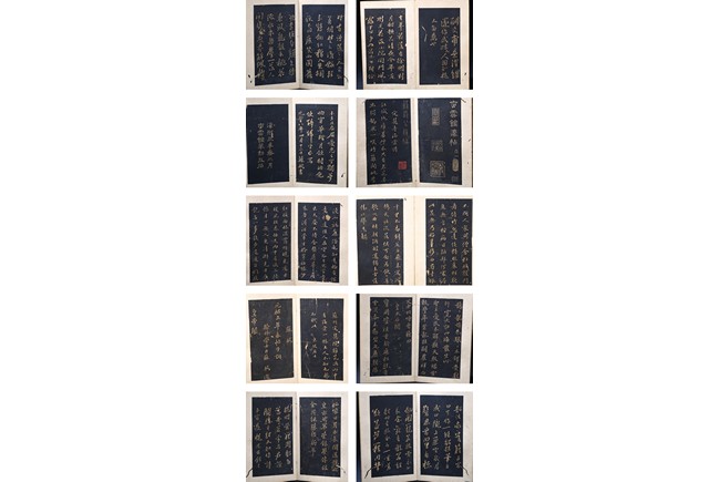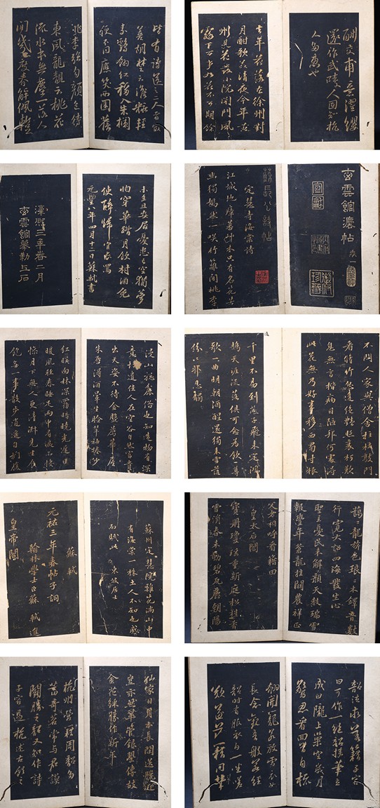 Ink on paper. Rubbing. Twenty leaves calligraphy album. Signed Su Shi, with seven seal marks.