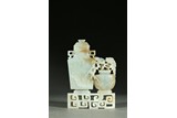 A WHITE JADE 'TAOTIE AND PLUM BLOSSOM' VASE GROUP