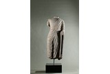 A LIMESTONE CARVED TORSO OF A STANDING BUDDHA