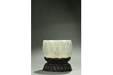 白玉雕七面佛描金經文鉢 配蓮花坐