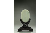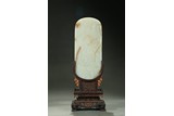 A WHITE JADE 'LANDSCAPE' INSCRIPTION TABLE SCREEN