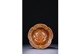 AN IRON RED-GROUND YELLOW ENAMEL PENTAFOIL BASIN