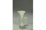 A WHITE JADE CARVED 'TAOTIE' GU VASE