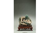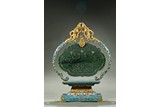 A GREEN JADE CARVED 'FIGURES' BOULDER