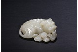 A WHITE JADE MYTHICAL BEAST PAPERWEIGHT