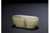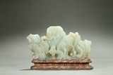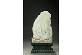A WHITE JADE MOUNTAIN BOULDER WITH SPINACH STAND