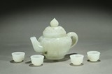A SET OF WHITE JADE TEAPOT AND FOUR CUPS