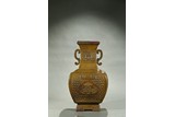 A GOLD-PAINTED AND FAMILLE ROSE HORSE VASE