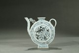 A BLUE AND WHITE 'QILIN' FLATTENED EWER