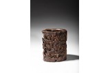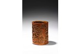 A BAMBOO CARVED 'LITERATI GATHERING' BRUSHPOT