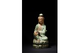 A LARGE LONGQUAN CELADON CARVING OF GUANYIN