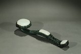 A LARGE SPINACH GREEN AND WHITE JADE RUYI SCEPTER