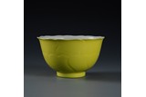 A YELLOW GLAZED LOTUS LOBE BOWL