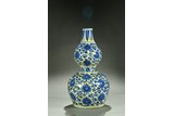 明 黃地青花纏枝紋葫蘆瓶 底有修