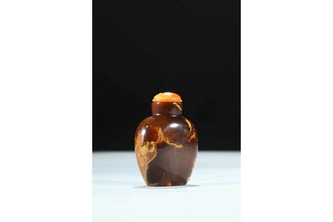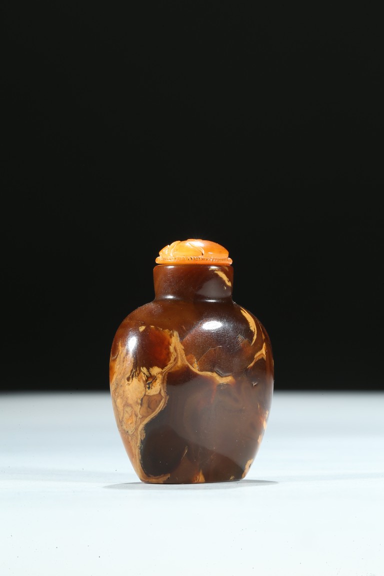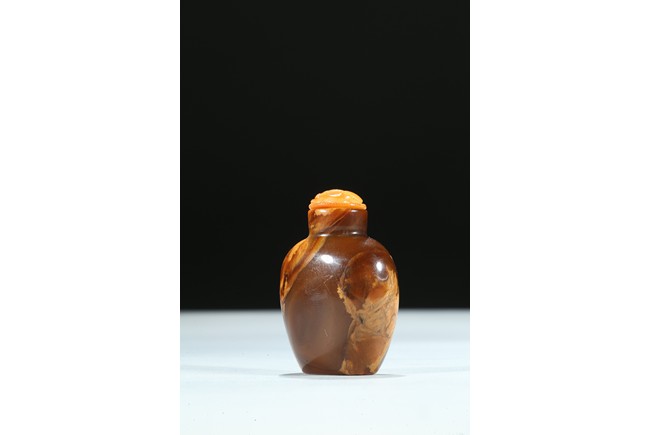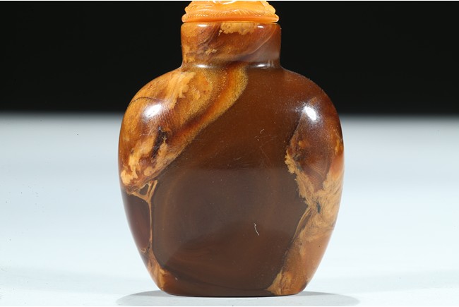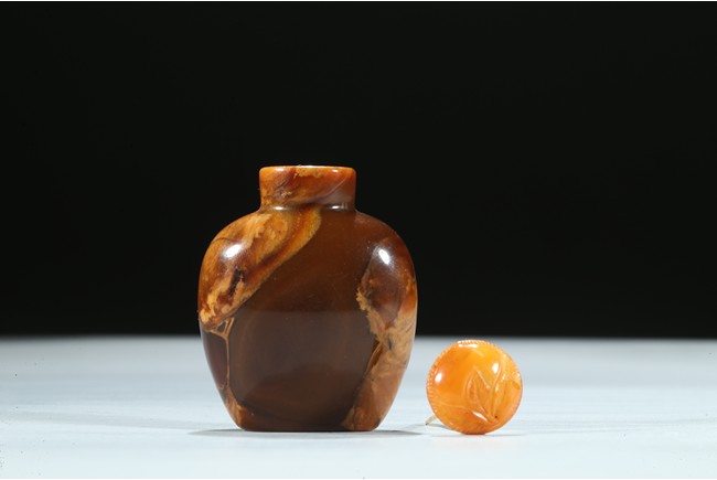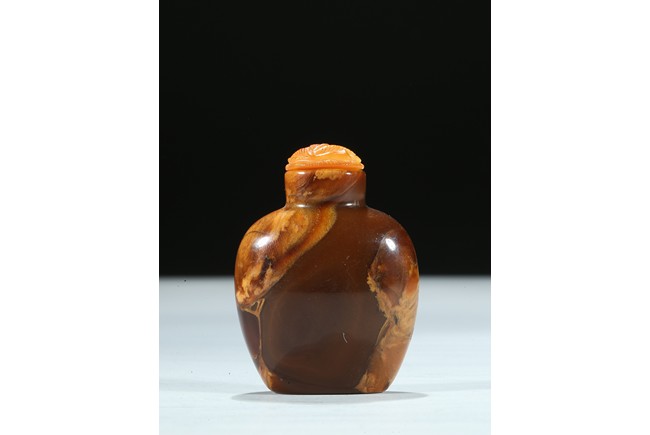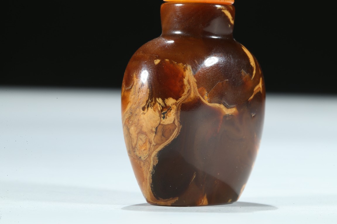 Of oval section, the amber is of mottled and opaque brown and ochre tone. Qing Dynasty period.