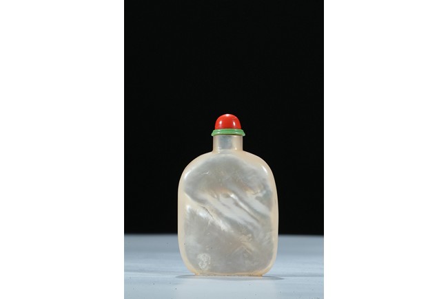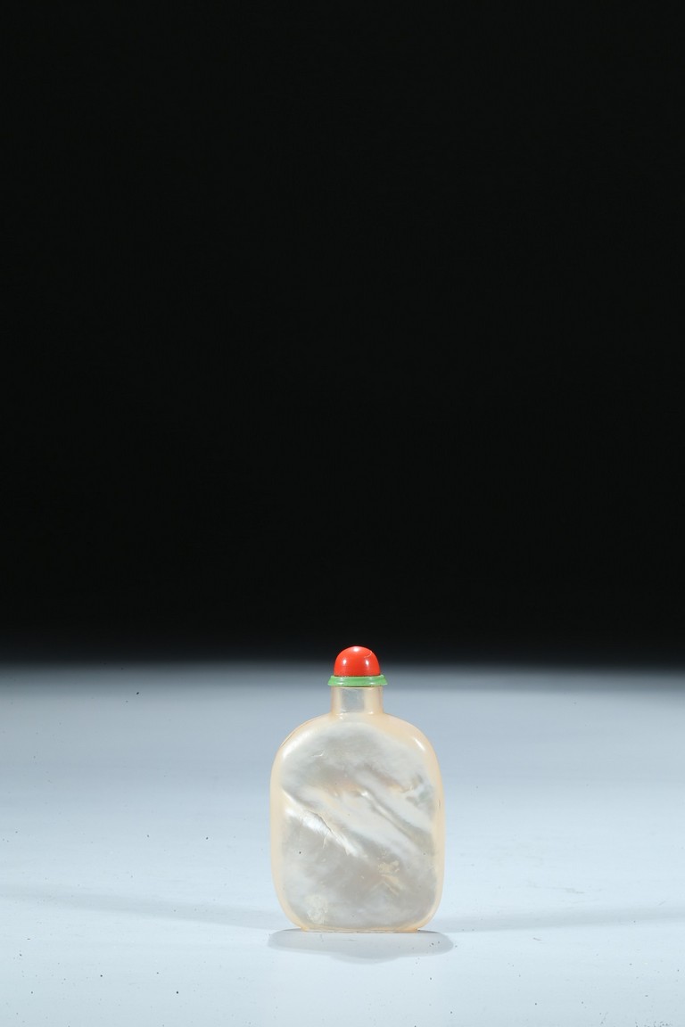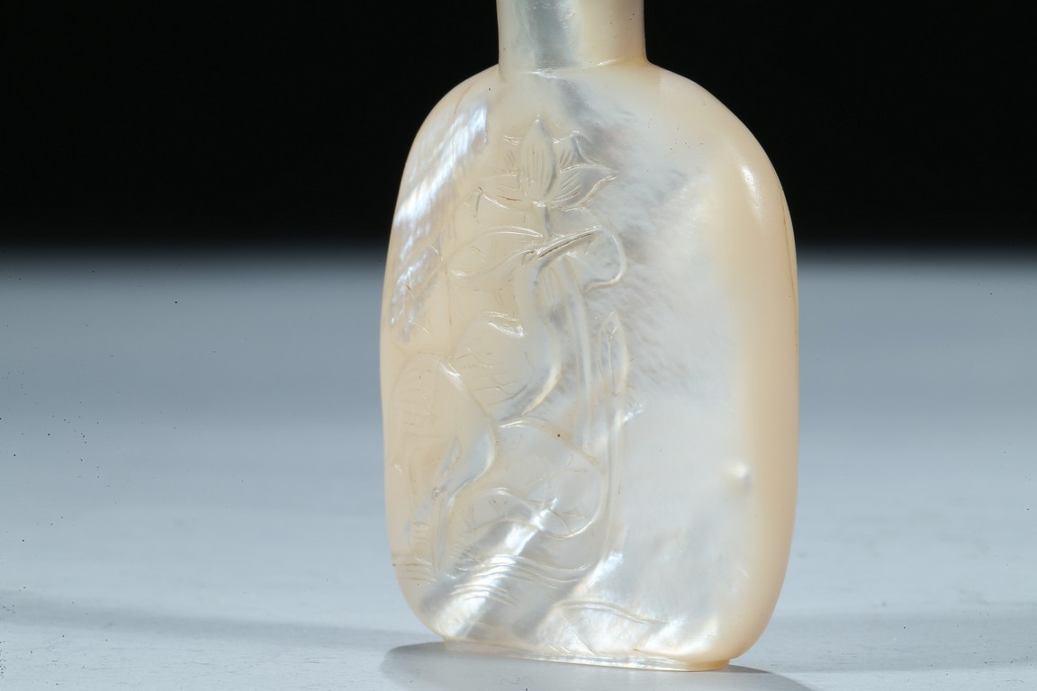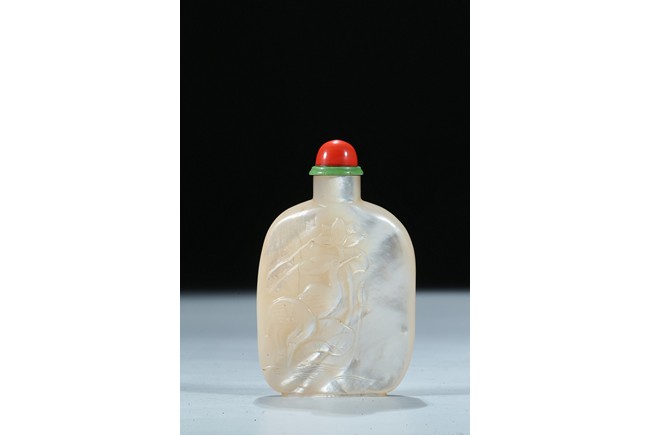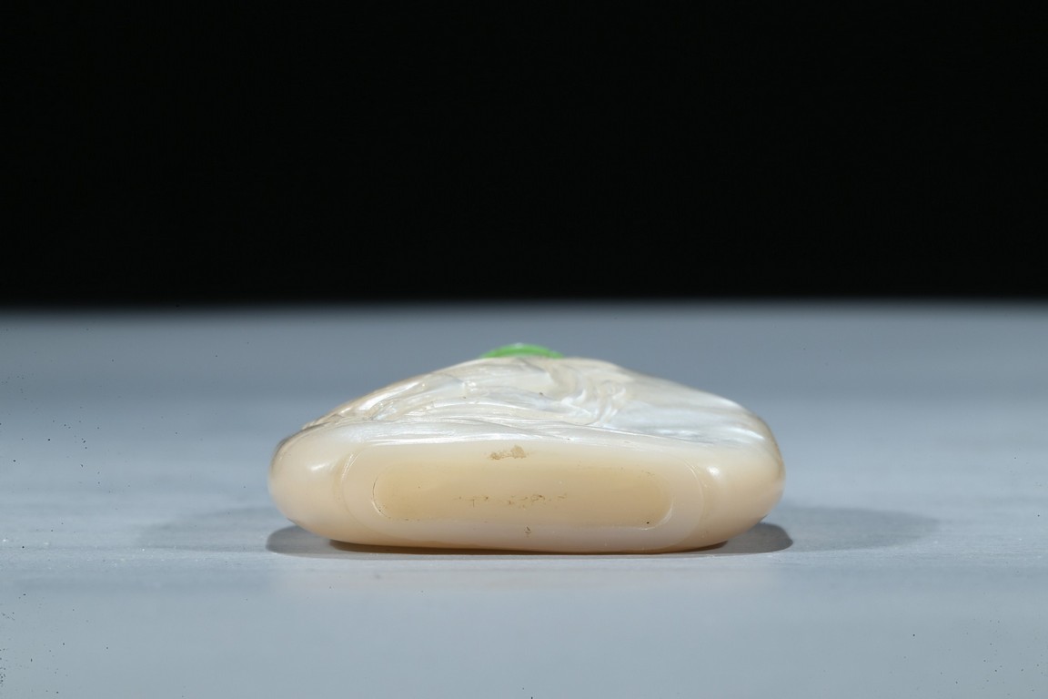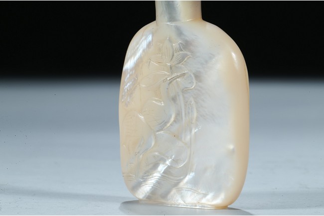 Of rounded rectangular shape, the semi translucent body carved with lotus in relief.Qing Dynasty period.