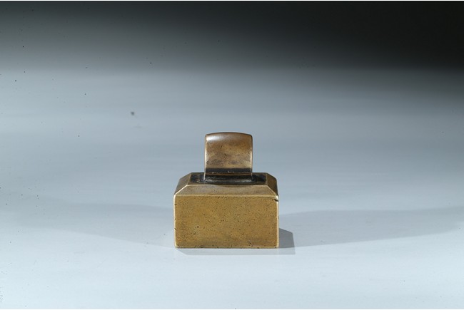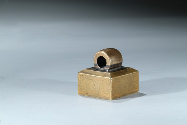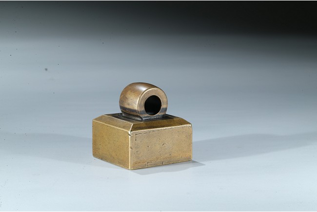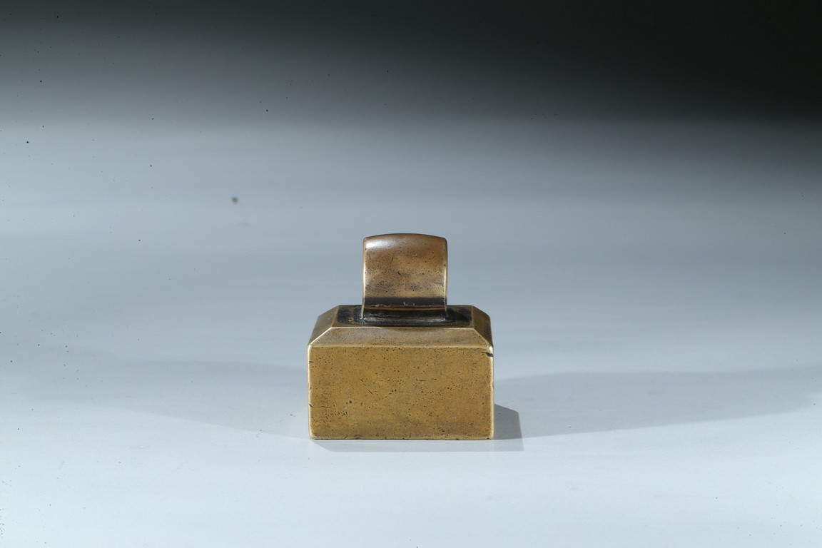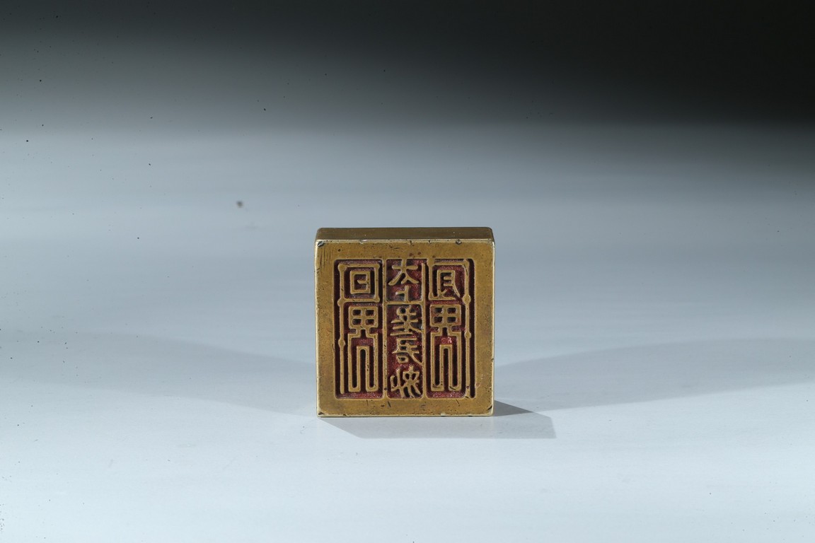 Of square shape, the seal with a loop as the finial, the base carved with characters. Qing Dynasty period.