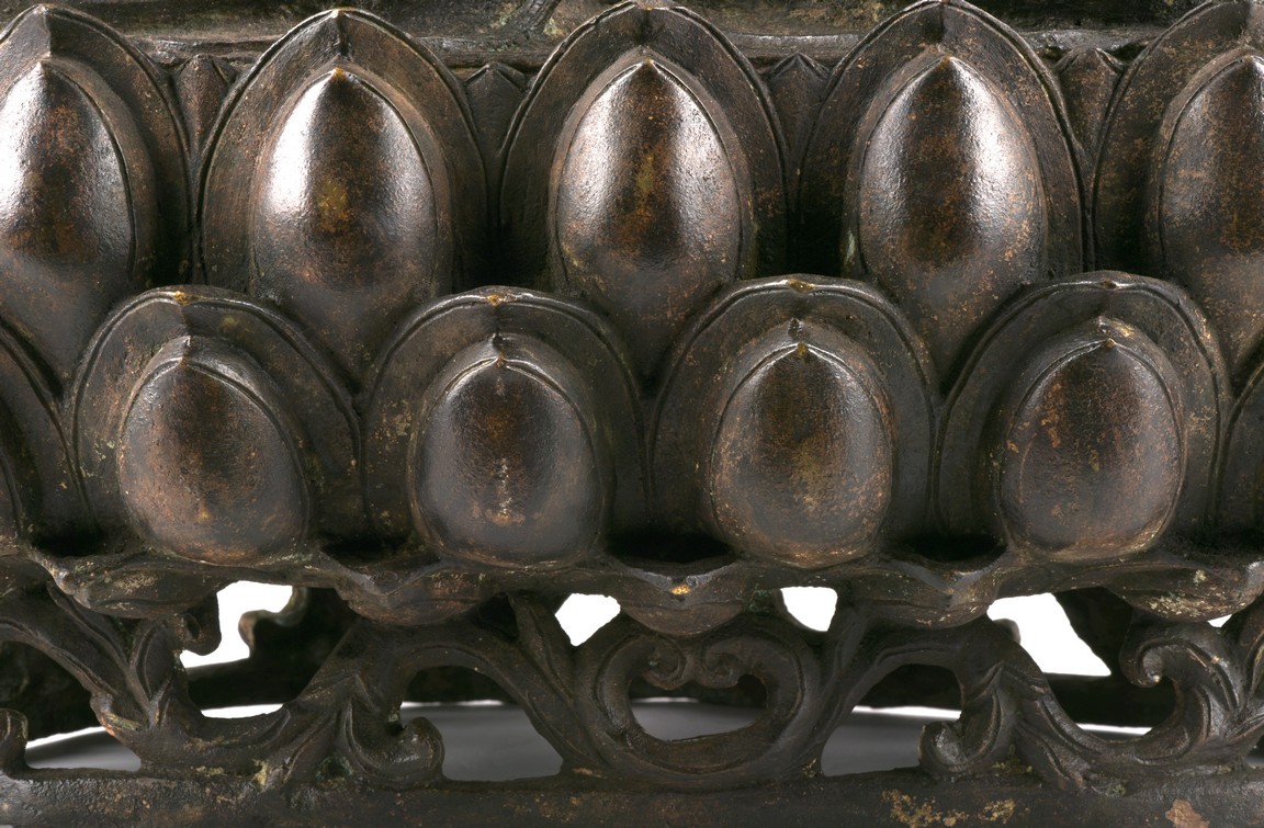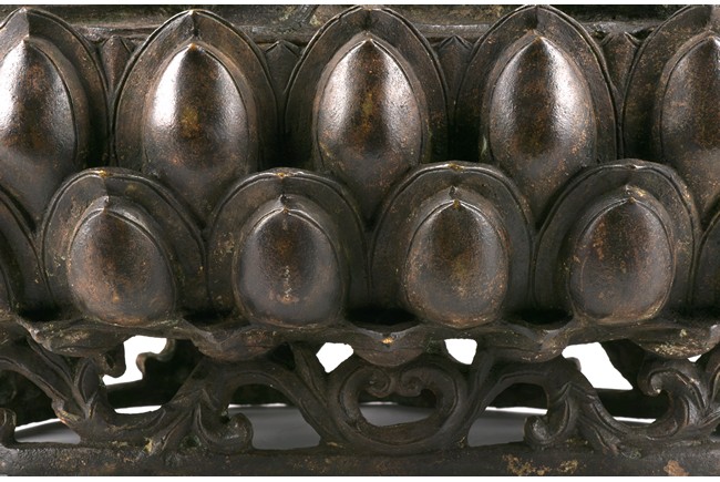 大勢至菩薩在中原地區受到了較高規格的禮遇,僅次於觀音菩薩和文殊菩薩。在眾多寺廟中,大勢至菩薩多與觀音菩薩一起供奉於阿彌陀佛的左右,較少單獨出現。明朝開國皇帝朱元璋出身自寺廟,因此自開國以來,明朝就將佛教視為國教。萬曆時期,慈聖皇太后熱忱奉佛,漢地造像藝術獨盛一時,但造像樣式幾乎統一化:皆為頭大身長,體態豐雍,正襟危坐,端正高雅的漢地審美風格。不僅民間如此,宮廷皇室或雄寺大廟也開始大量鑄造銅質鎏金大佛來粉飾天平,所造之像雖然風格與民間造像類似,但往往比例規整,體格較大,身軀飽滿結實,線條簡潔流暢,豐腴而不虛,近人而不俗。大勢至菩薩坐像面龐圓潤,眼神微閉,柔和慈祥,似乎可以化解芸芸眾生的一切苦難。左手置於胸前,右手拇指和中指輕拈,姿勢優美自然,栩栩如生。菩薩上身著單領式通肩袈裟,下身著高束腰長裙,衣紋處理採用了漢地傳統雕刻技法,自然流暢,生動寫實,衣緣上鏨刻花紋,做工精細。形態端莊,通體鎏金,雕刻細緻入微,時代風格鮮明,為明代漢地造像之精品。在同時期其它漢地造像中,神祇的頭部比例往往過大,用來的強調其異相,而本件大勢至菩薩頭部與身材比例適中,相信承接自永宣宮廷造像於比例關係之衣鉢。