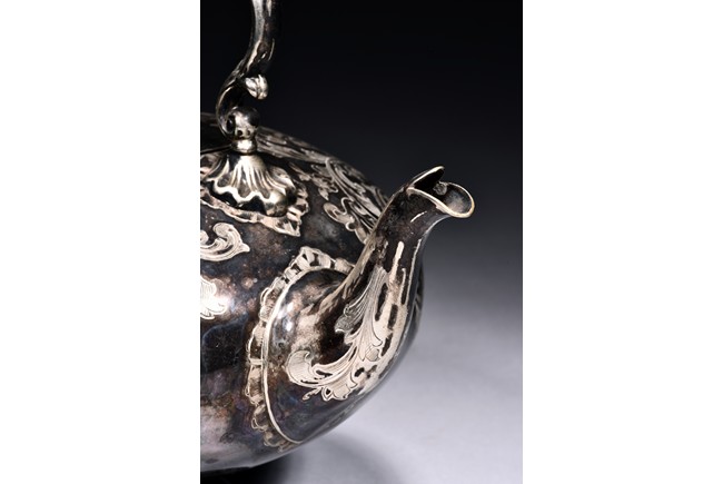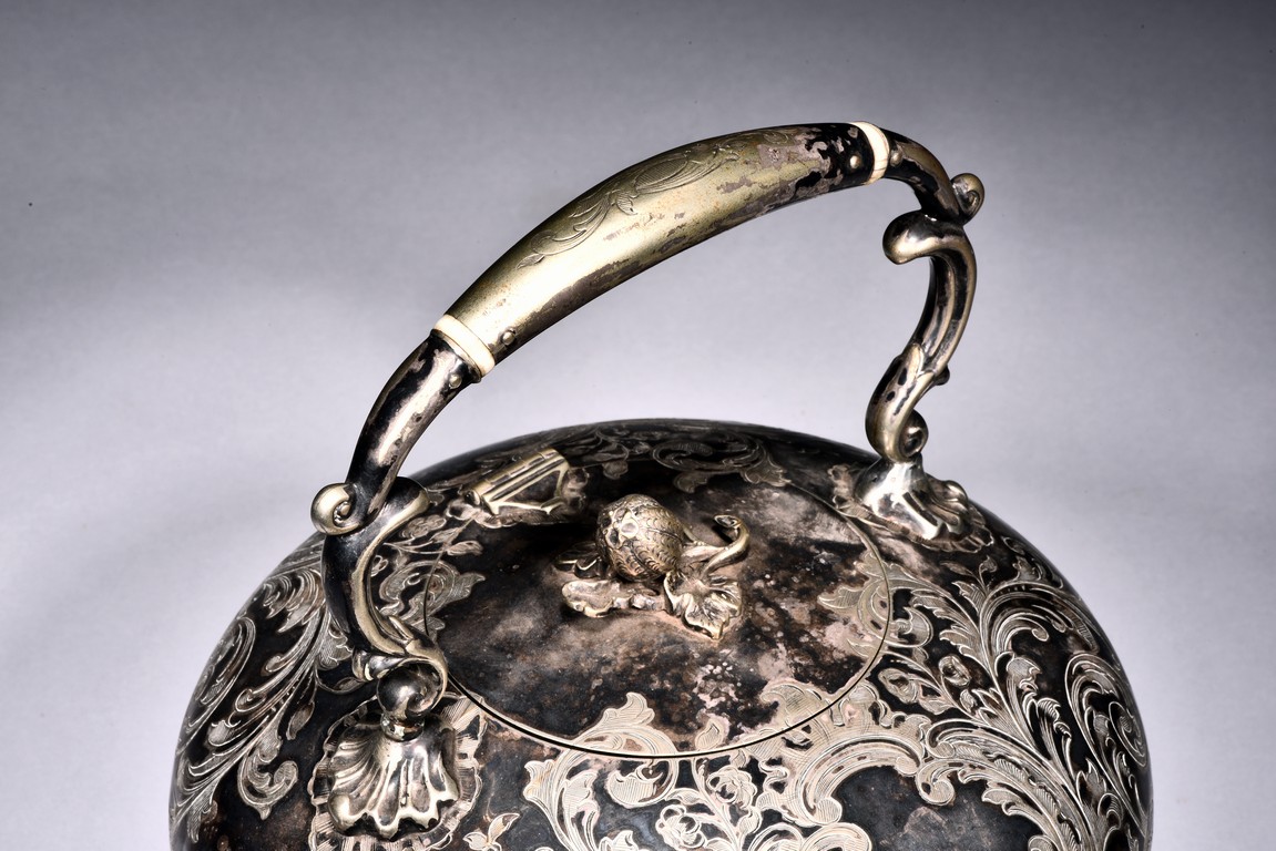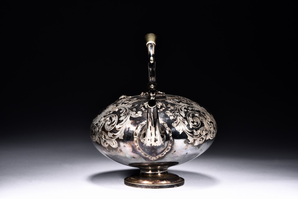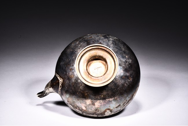 Of compressed globular form,the body engraved with floral scrolls. The base impressed with marks. 19th Century.