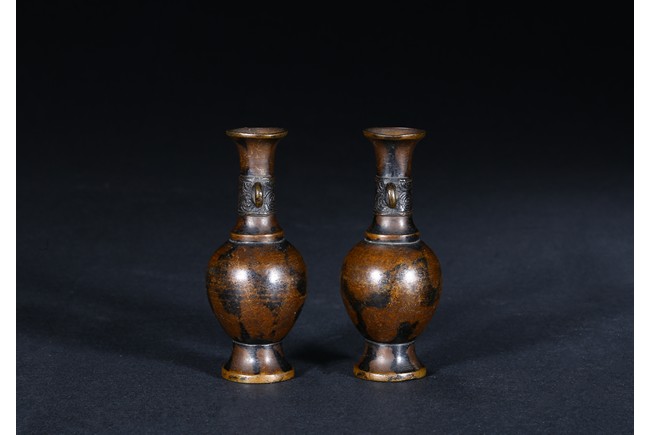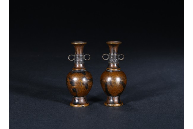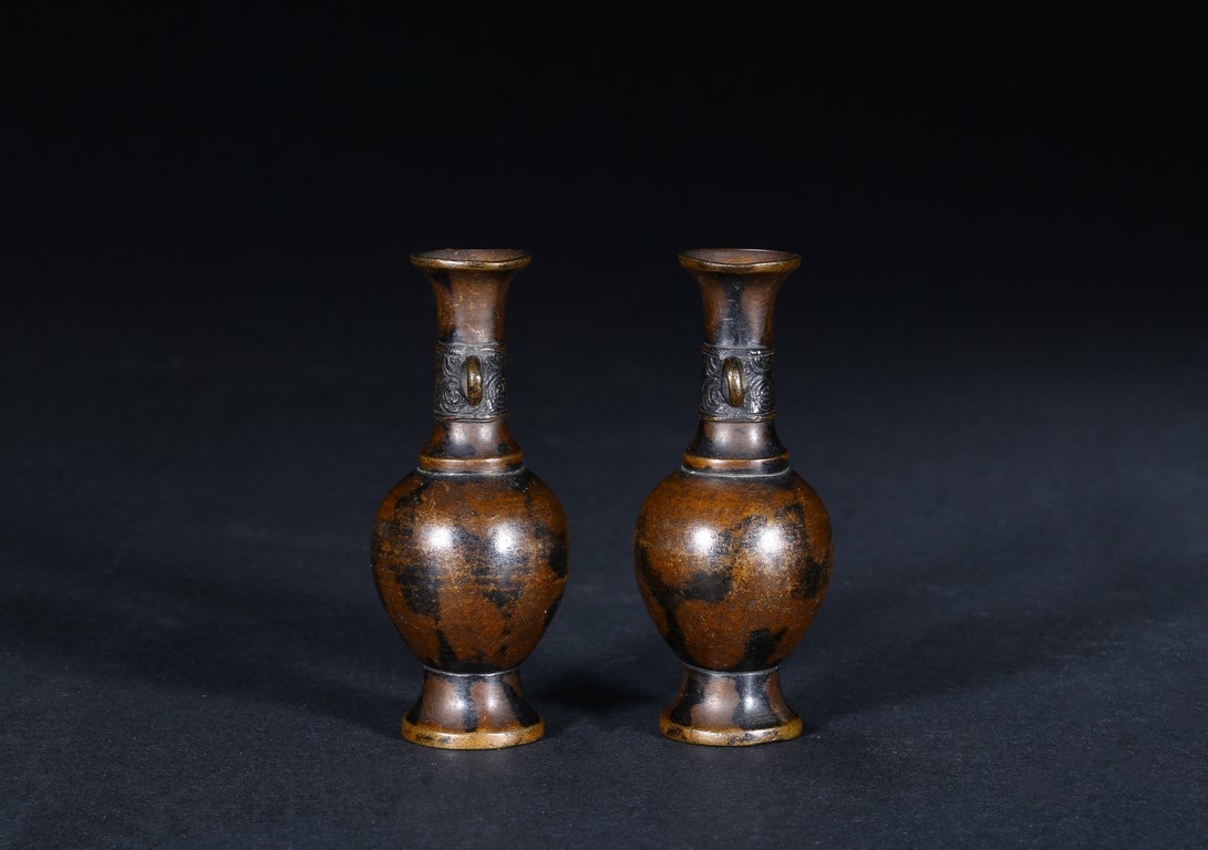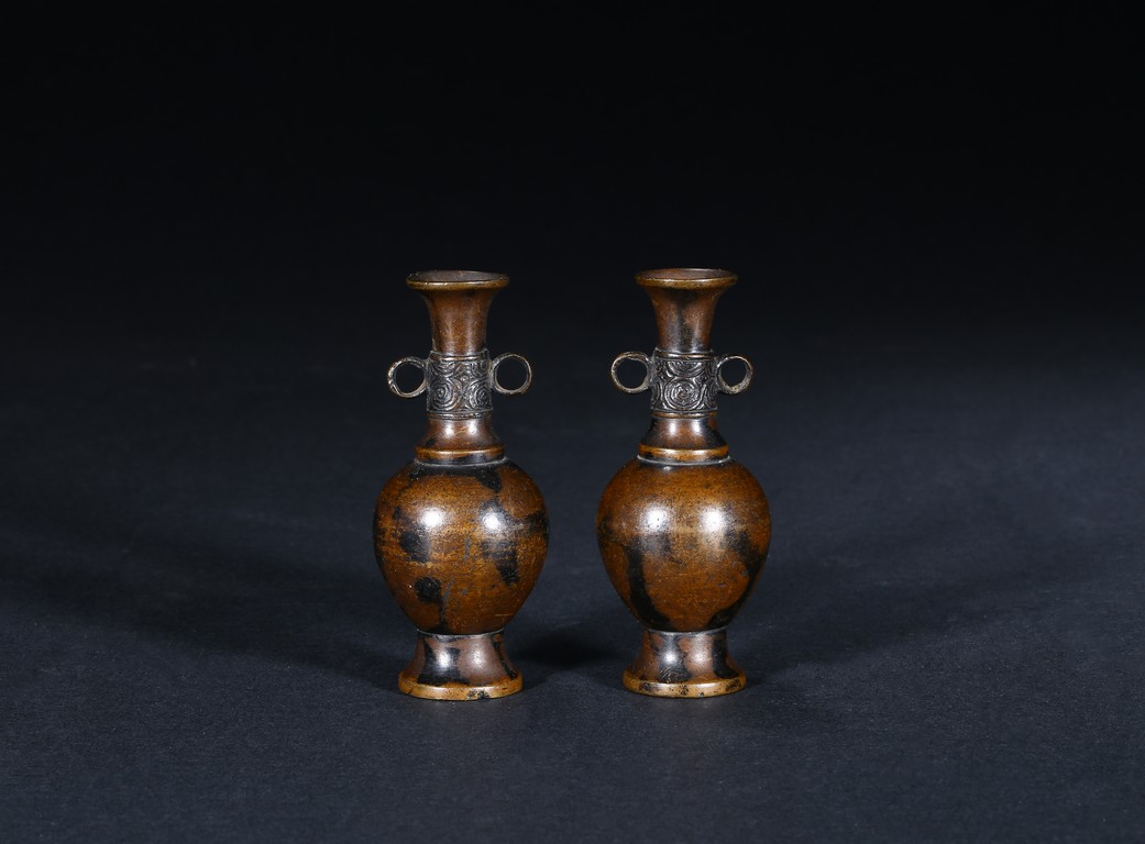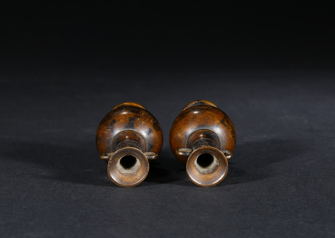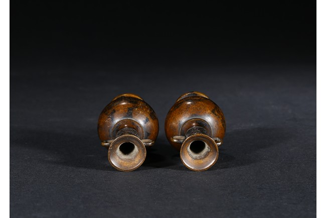 A PAIR OF SMALL BRONZE INCENSE HOLDERS    清 銅小香插一對