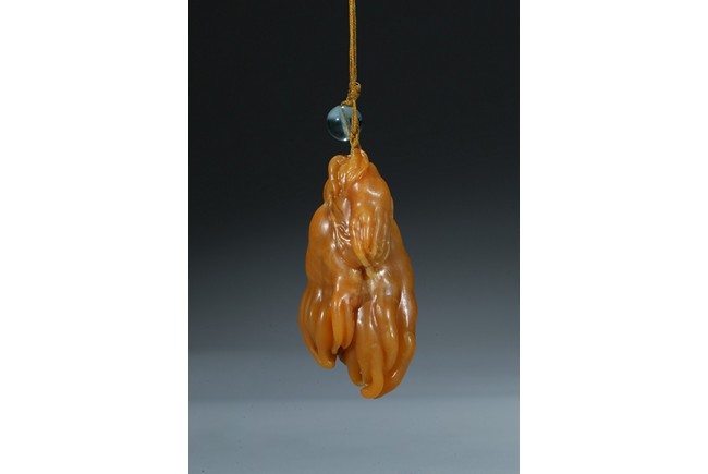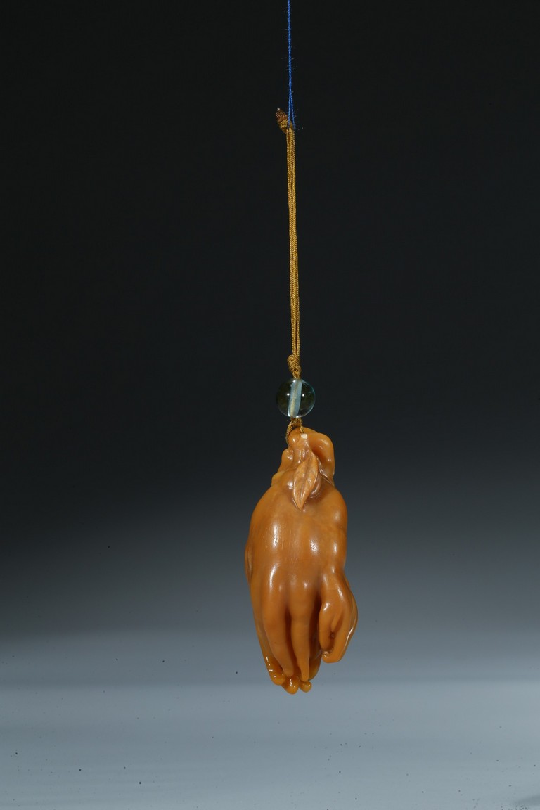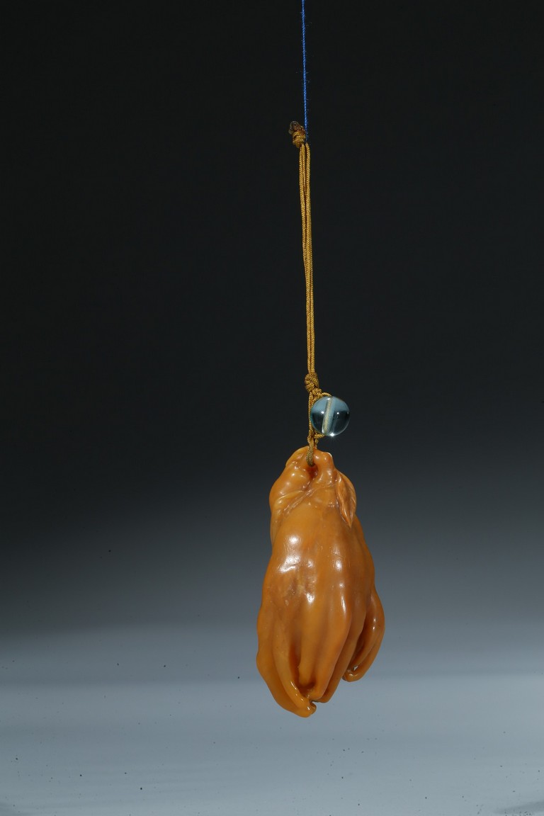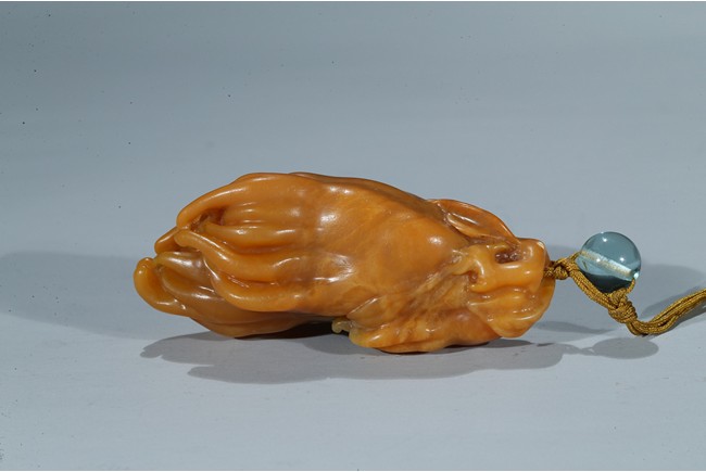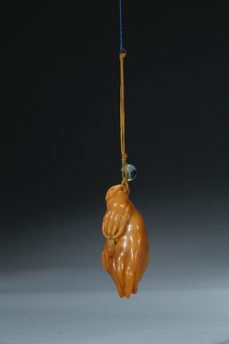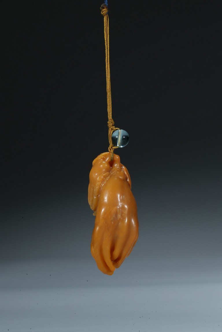 finely carved as finger citron-fruit with curling tips borne on a gnarled and leafy stem. Qing Dynasty period.