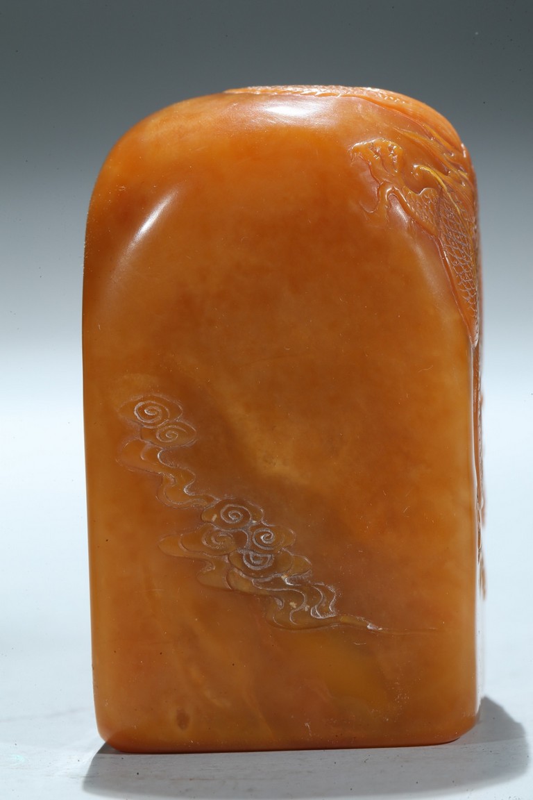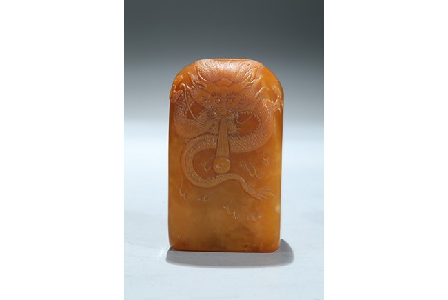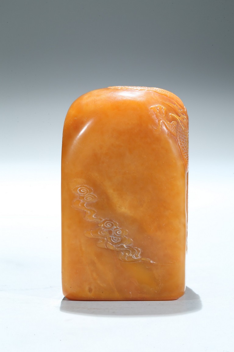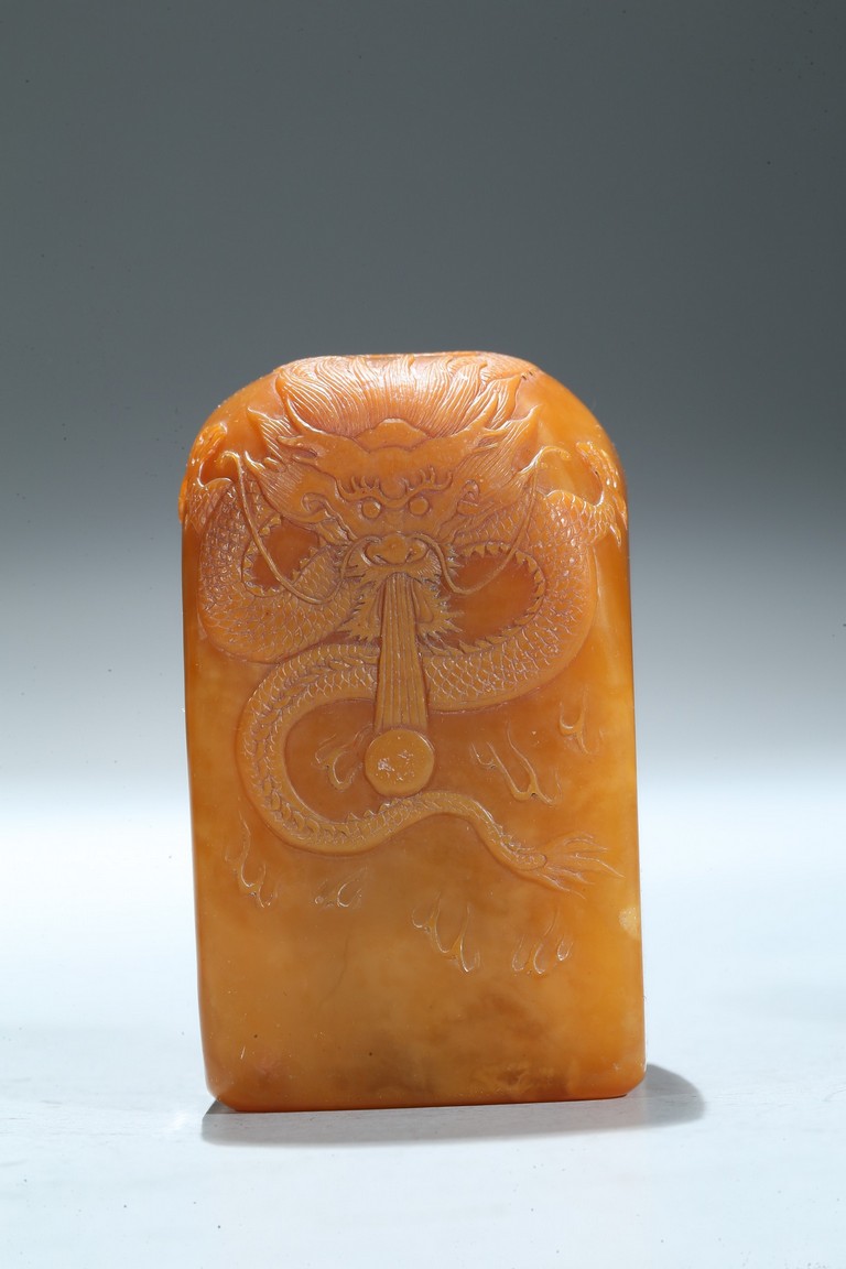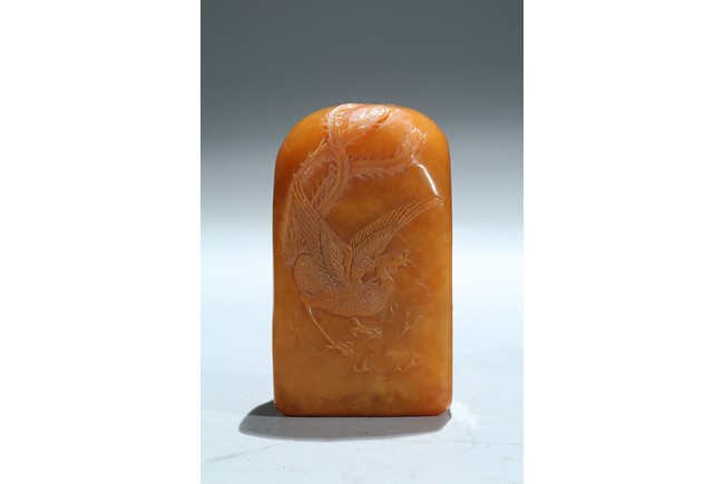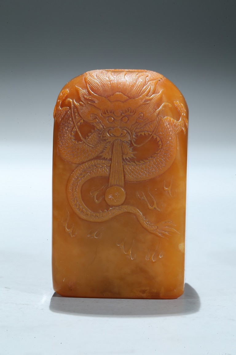 Consisting of three delicately carved rectangular seals, one carved with dragon, the other two carved with phoenix in shallow relief. All three seals face carved with characters.