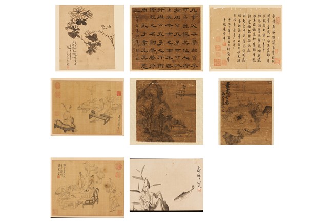 Various artists or attributed to,including Bada Shanren,Ke Jiusi,Chen Hongshou,and others. Eight leaves. Ink on silk and paper.