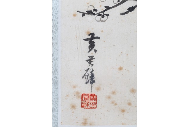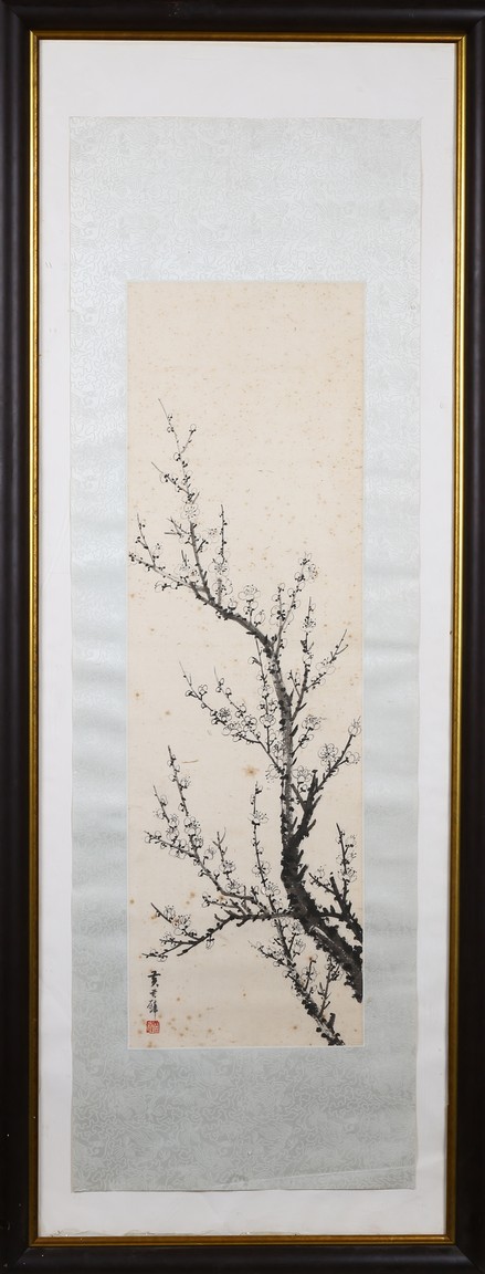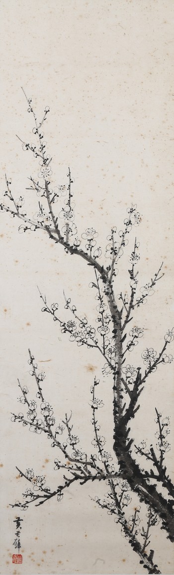 Ink on paper. Framed. Plum Blossom. Signed Huang Junbi and with one seal mark.