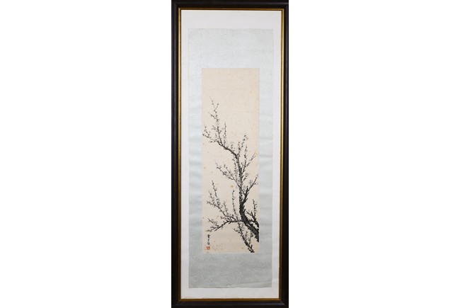 HUANG JUNBI: FRAMED INK ON PAPER PLUM BLOSSOM PAINTING 黃君璧 梅花 水墨紙本 鏡框
