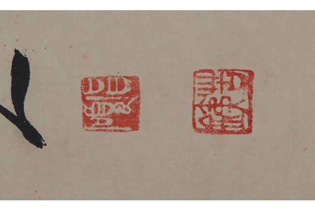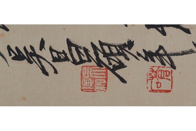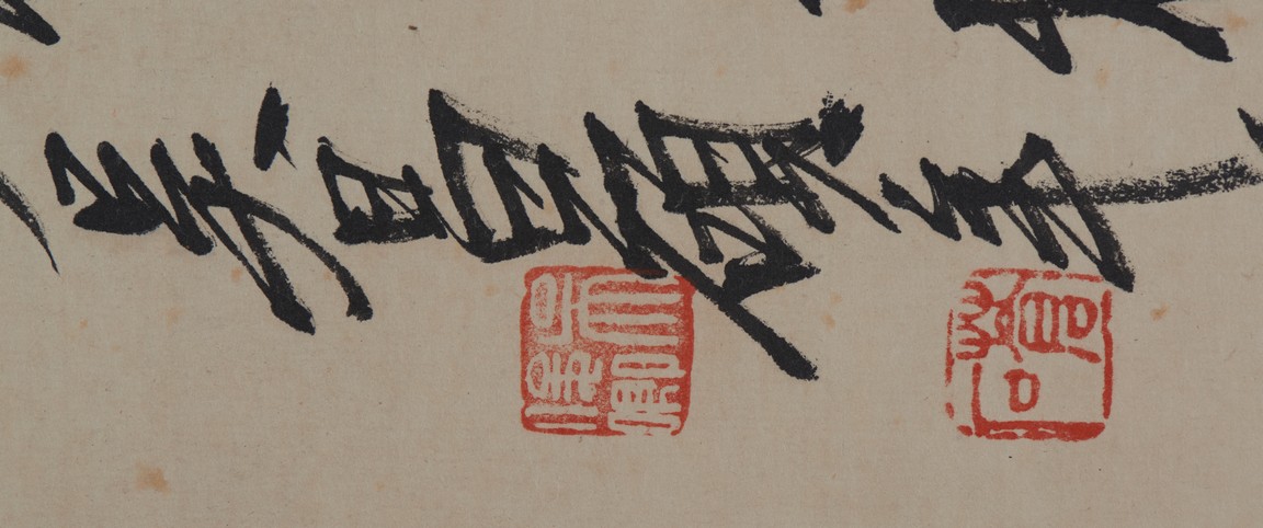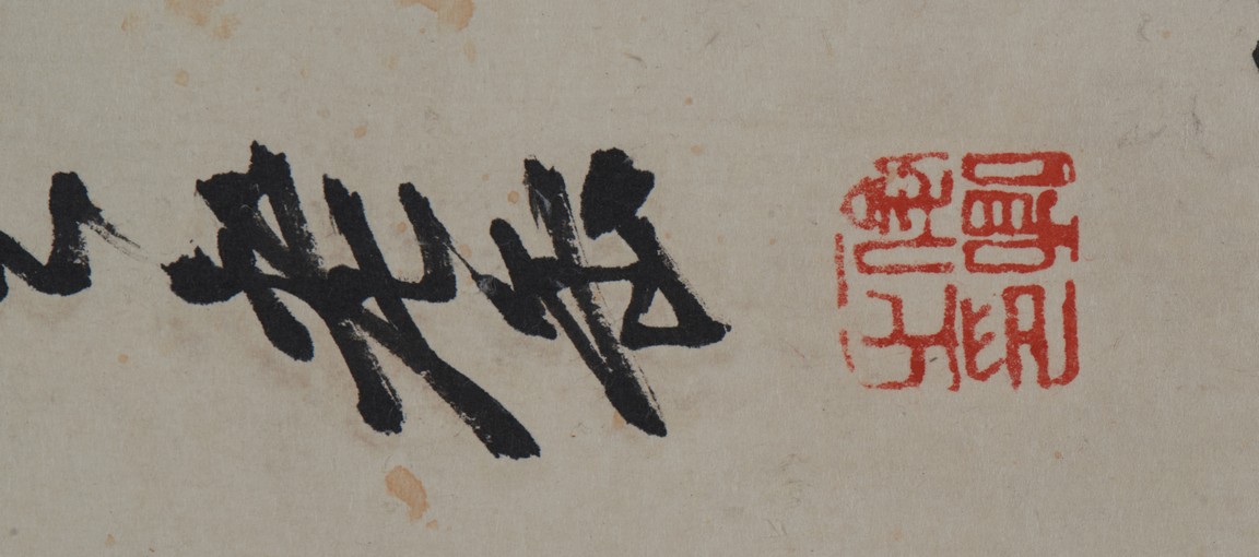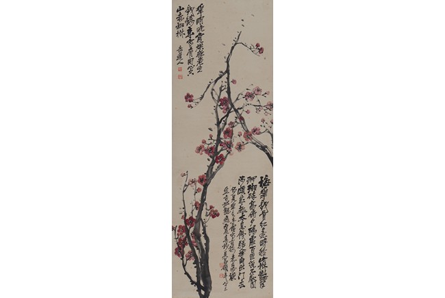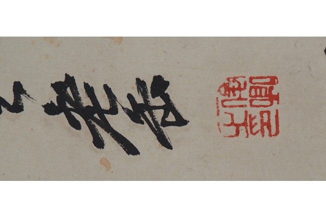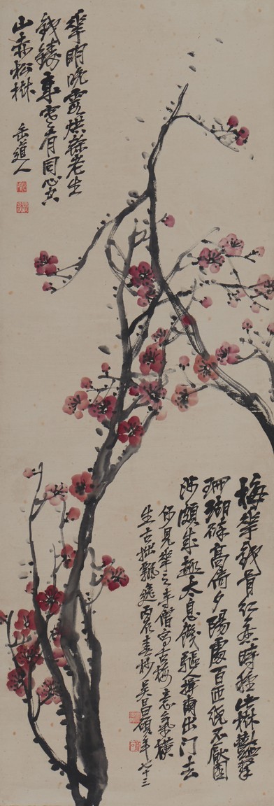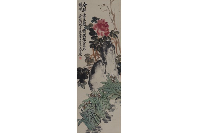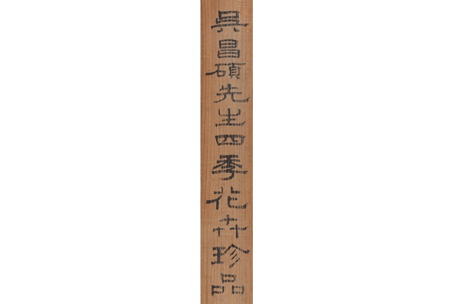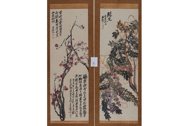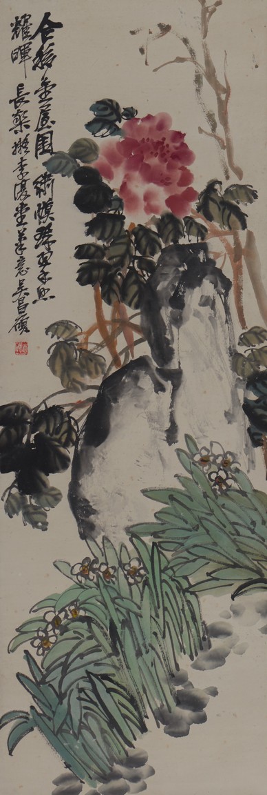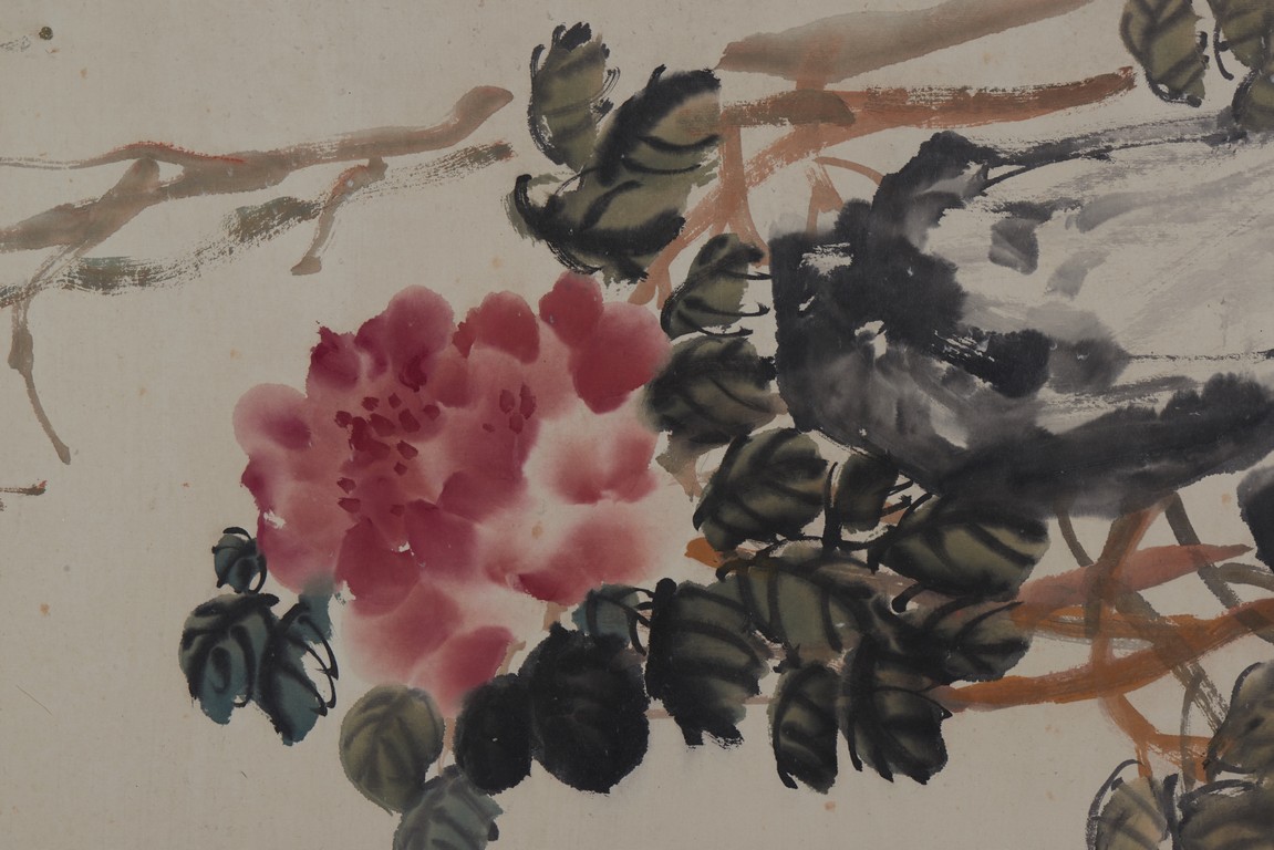 Color and ink on paper. Set of four flowers painting. Hanging scroll, signed and various seals of the artist. Accompanied with original Japanese wood box.