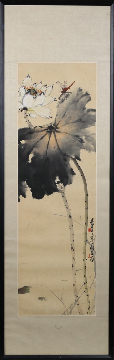 OU HAONIAN: COLOR AND INK ON PAPER 'LOTUS' PAINTING 歐豪年 荷花 設色紙本 鏡框
