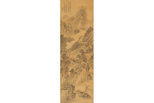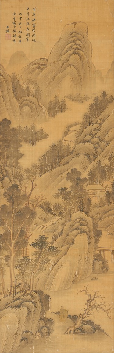 WANG JIAN: COLOR AND INK ON SILK 'LANDSCAPE' PAINTING 王鑒(款) 山水 水墨絹本 立軸