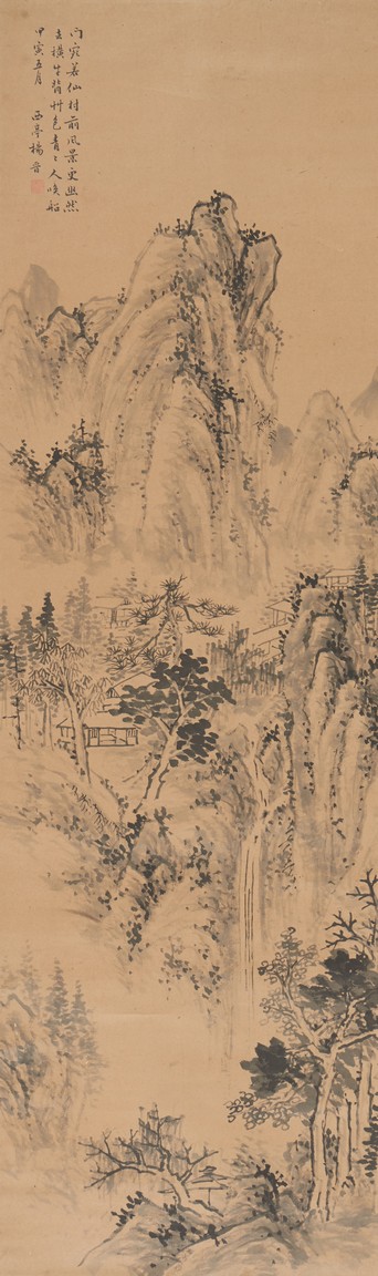 YANG JIN: INK ON PAPER 'LANDSCAPE PAINTING 楊晉(款) 山水 水墨紙本 立軸