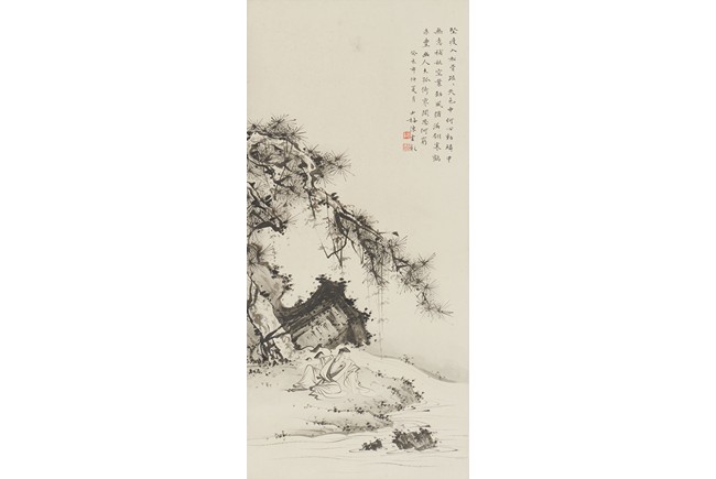 Ink on paper. Figure landscape. Hanging scroll. Inscribed and signed, with two seals of the artist.
