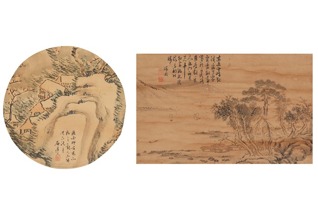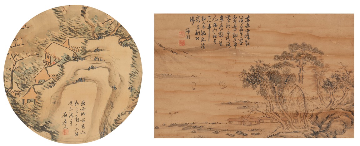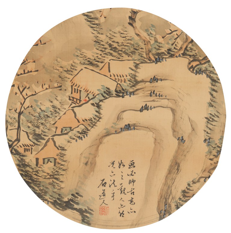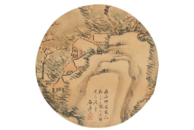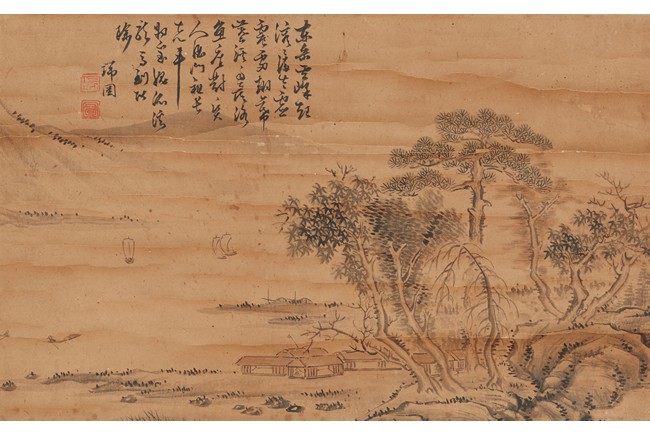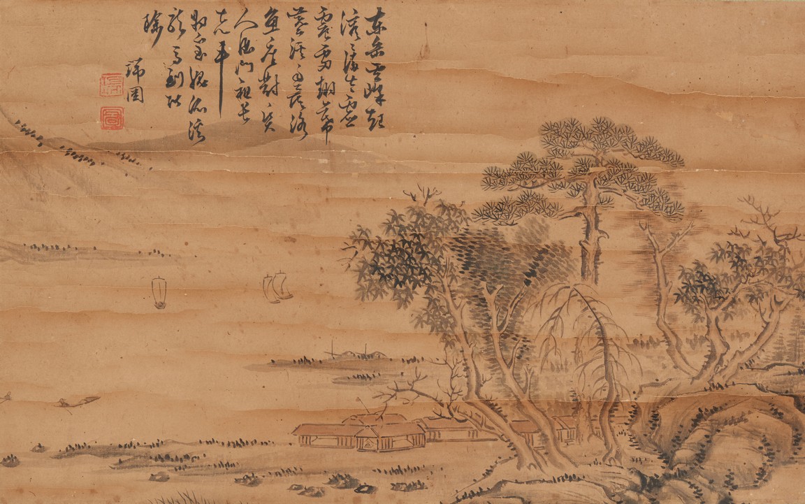Color and ink on paper. Landscape. Mounted for framing. Inscribed and signed, with one seal of the artist