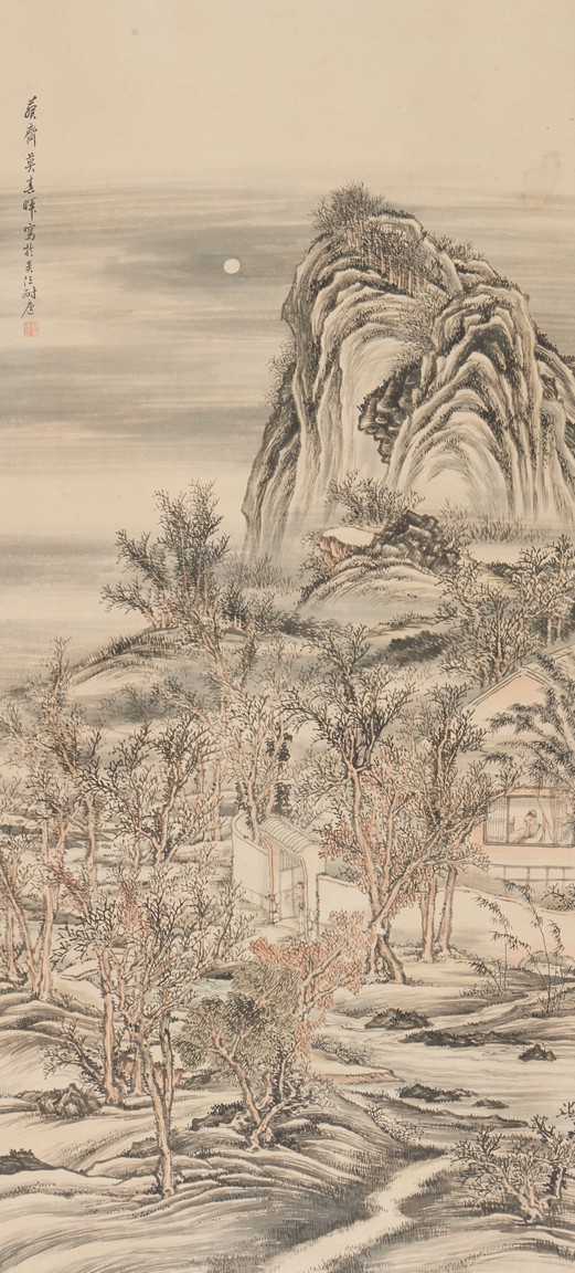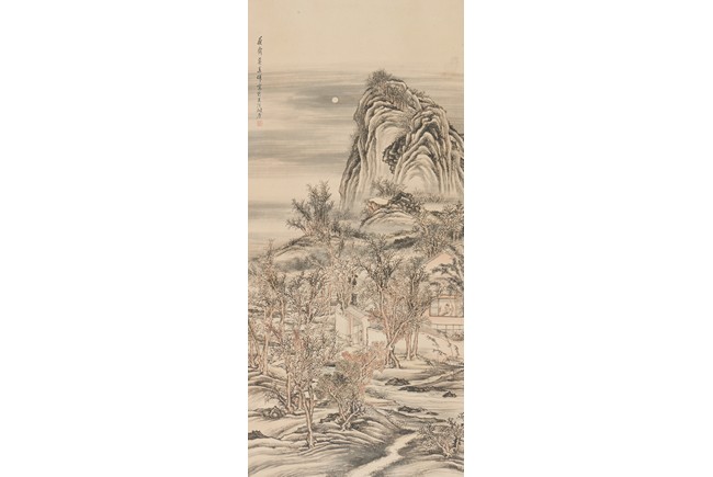 Color and ink on paper. Landscape. Hanging scroll. Inscribed and signed, with one seal of the artist