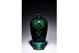 A BLACK GROUND GREEN ENAMELED 'POMEGRANATE' VASE