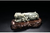 A CELADON JADE BUFFALO AND BOYS GROUP