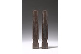 A PAIR OF ZITAN QIN-SHAPE INSCRIBED WRISTRESTS