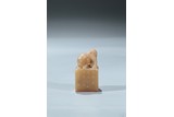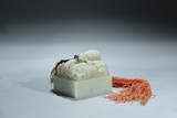 A CELADON JADE CARVED MYTHICAL BEAST SEAL