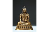 A LARGE GILT BRONZE FIGURE OF SHAKYAMUNI