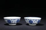A PAIR OF BLUE AND WHITE 'FLOWERS' BOWLS